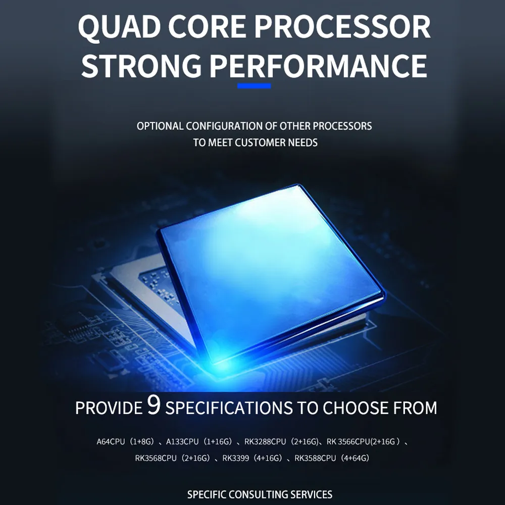 | CPU | Allwinner A133 Quad Core, clocked 1.6GHz (customizable with various CPU available) |